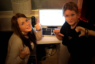 Emmi Siljamäki (vas.) nostaa peukut pystyyn Facebookille,